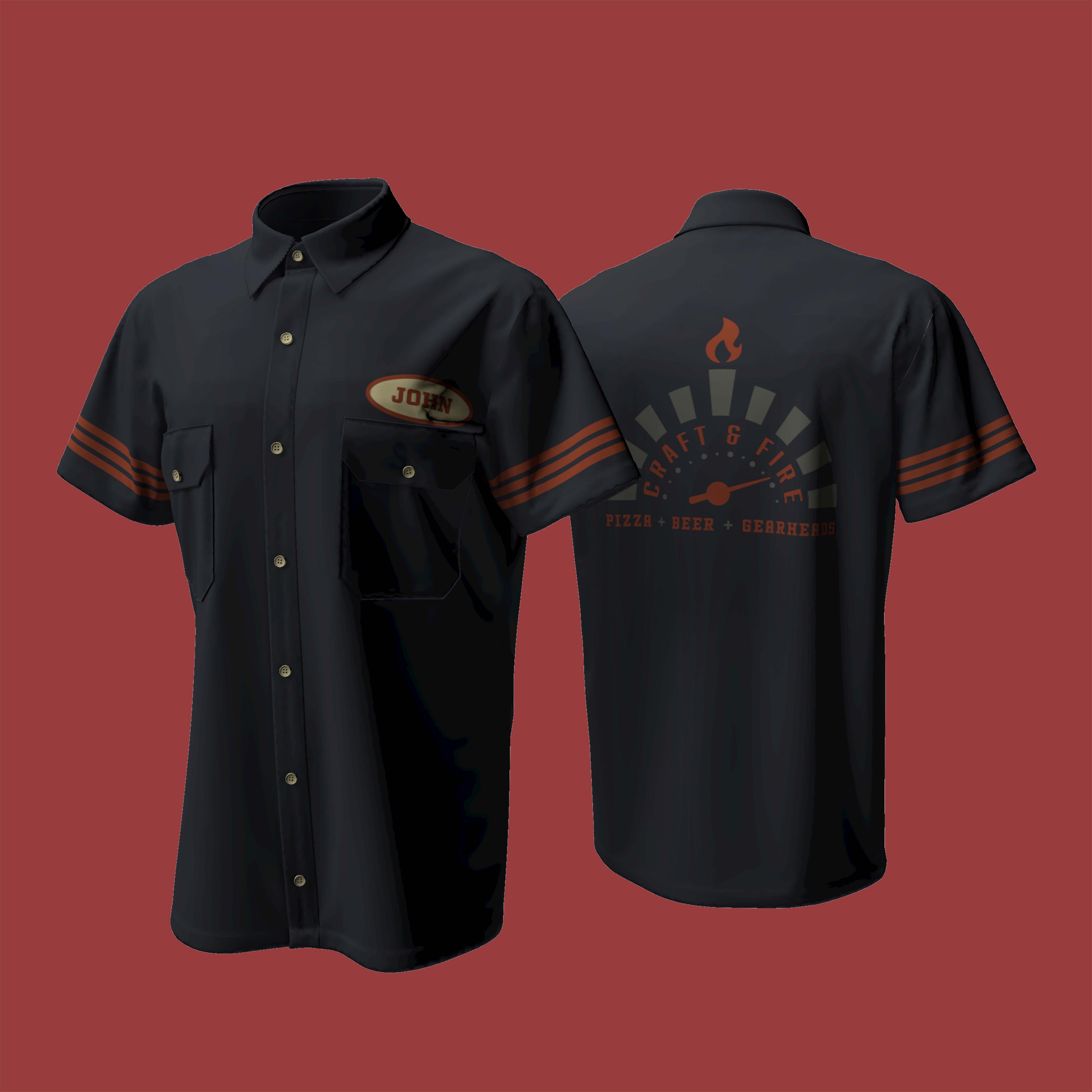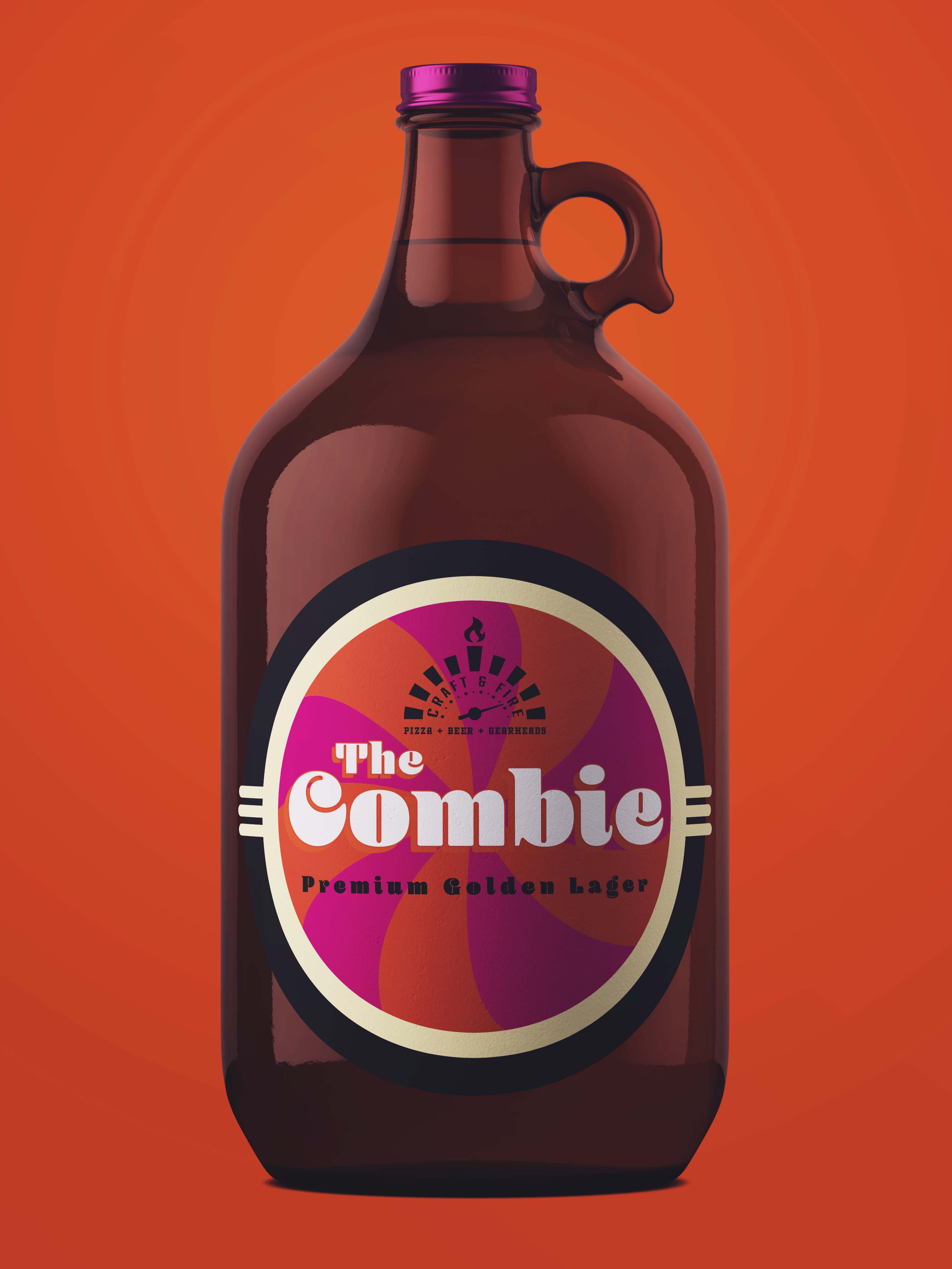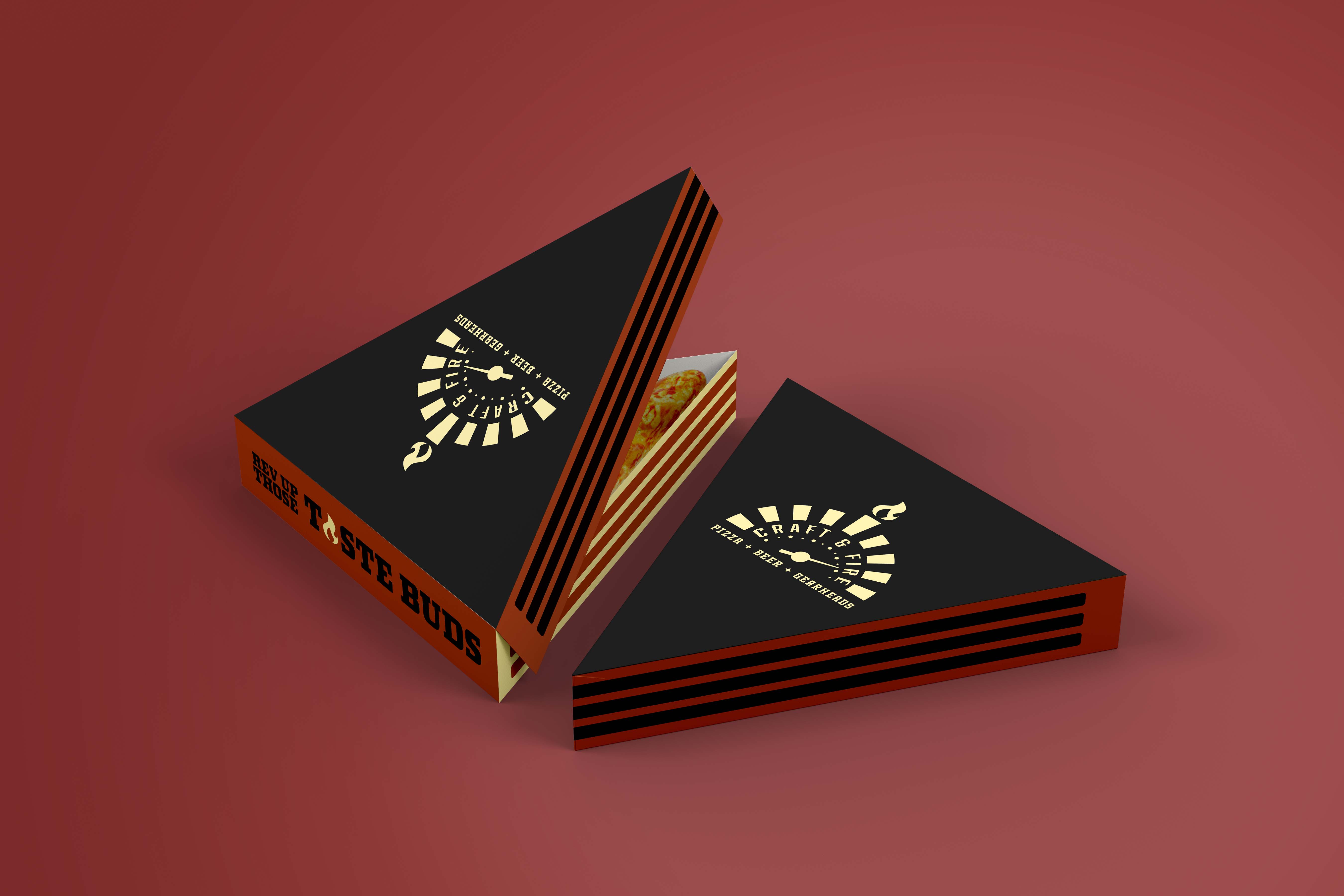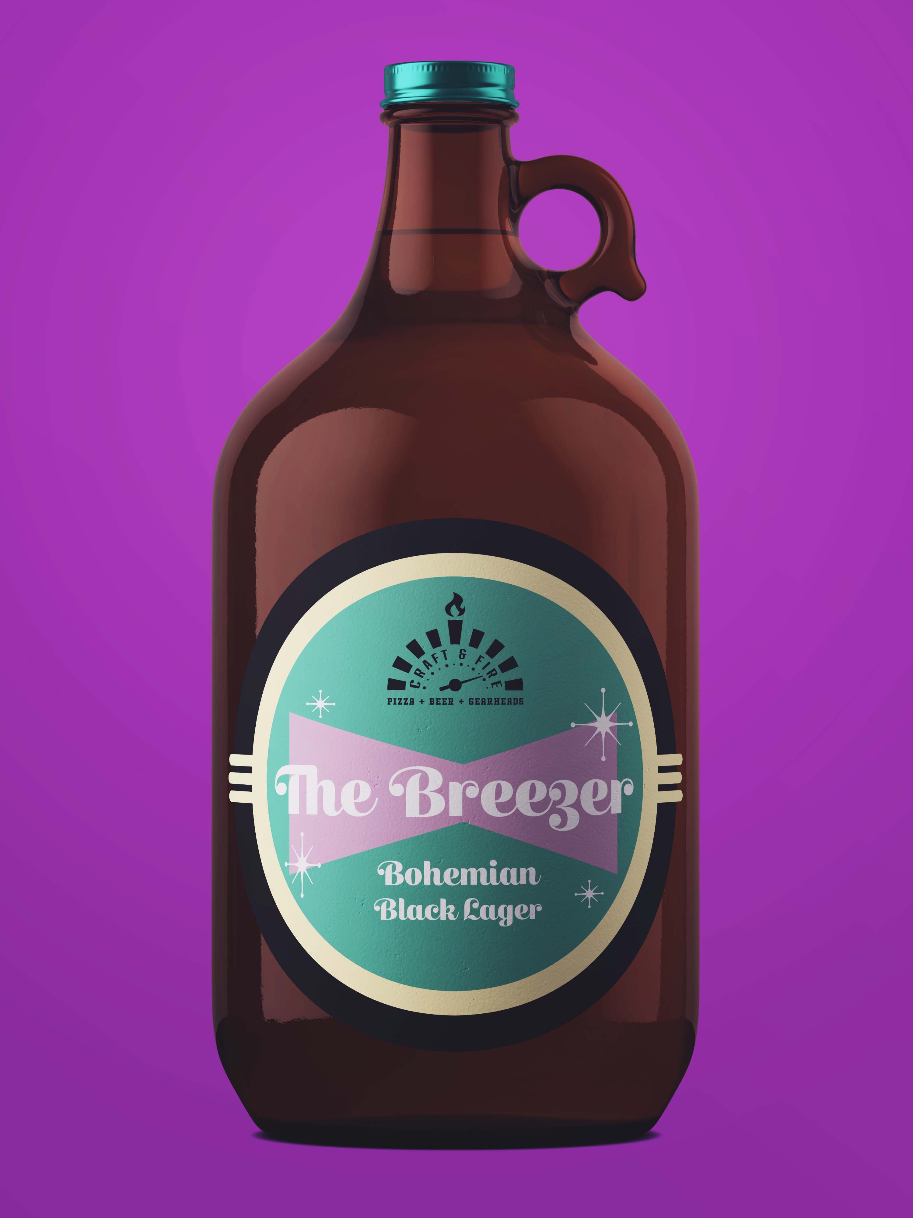 Class assignment of promotional design for a fictitious client, a pizza parlor housed in an old car repair shop. The digital promotional materials included four amber growlers, wax paper, a mechanic-style t-shirt for the staff, an individual pizza box, and plastic paper cups.