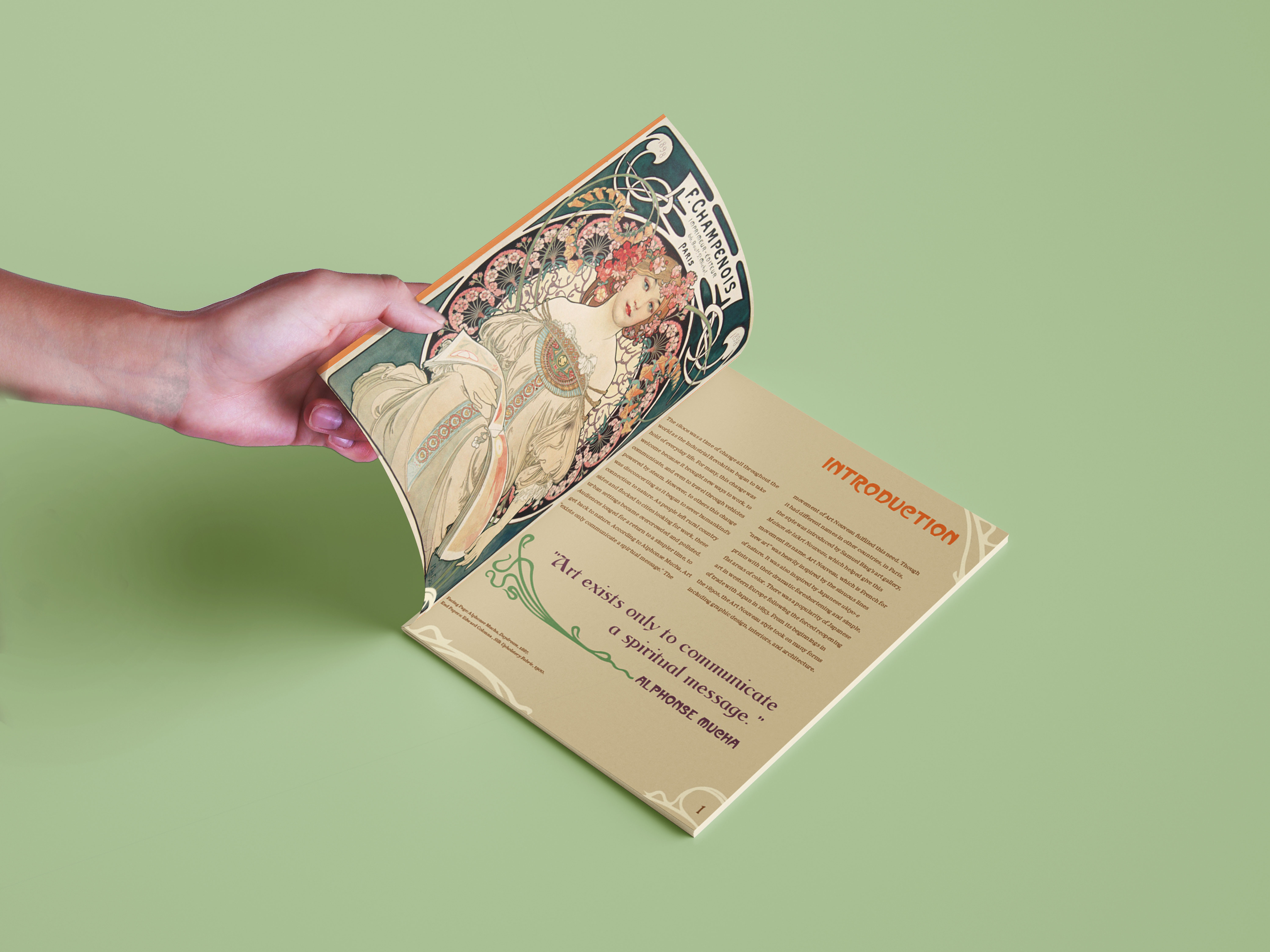 Class assignment to create a fictional Art Nouveau exhibition catalog for the El Paso Museum of Art.