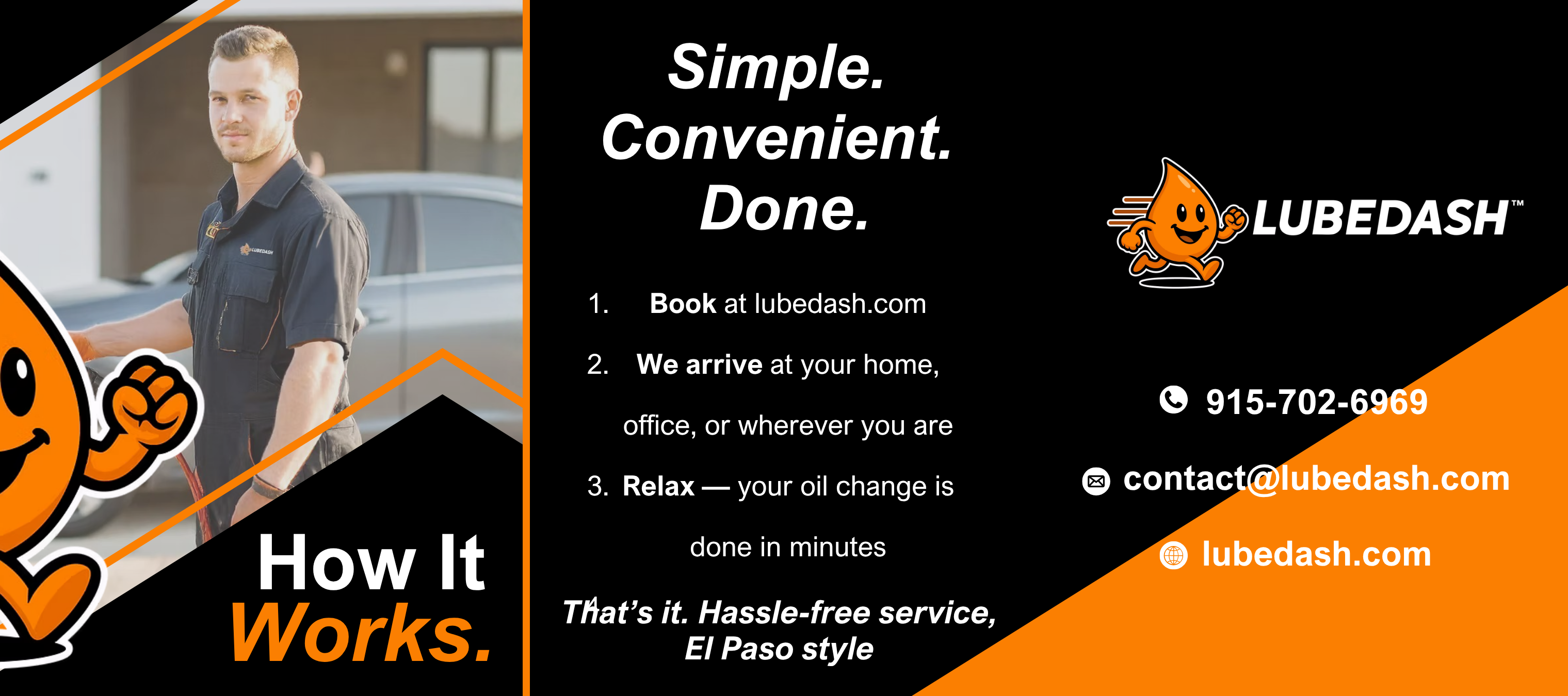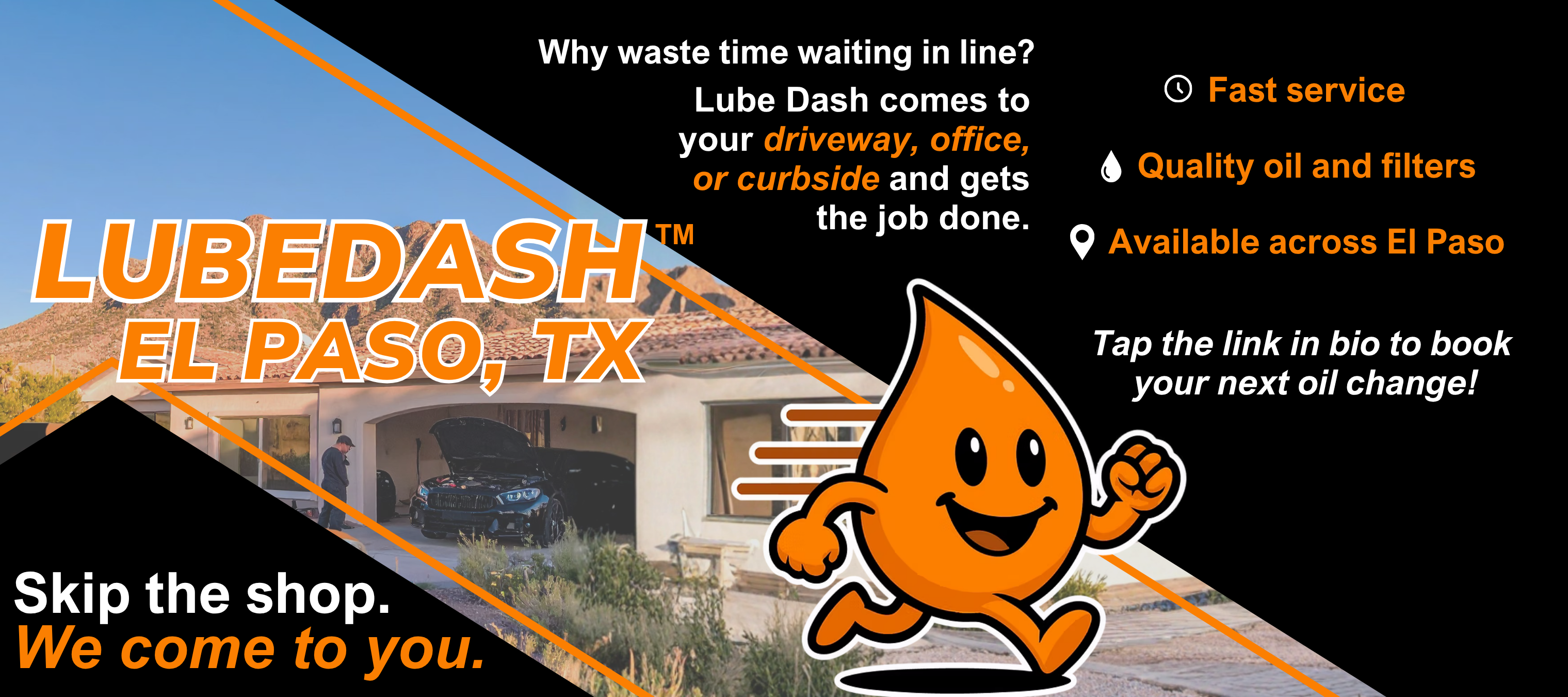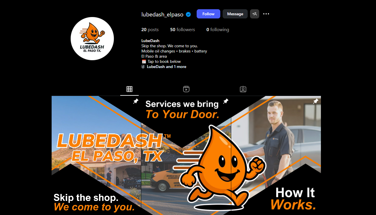 Three-pinned post designs used by the official Lube Dash Instagram Account (@lubedash_elpaso) for their 2025 relaunch. CREDIT: Logos and images owned by Lube Dash.